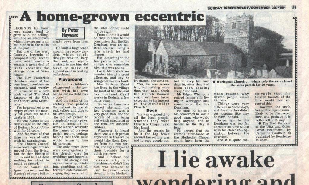Rev Frederick Densham was born in 1870 and was Rector of St Barthelews church in Warleggan, a tiny village on Bodmin Moor.